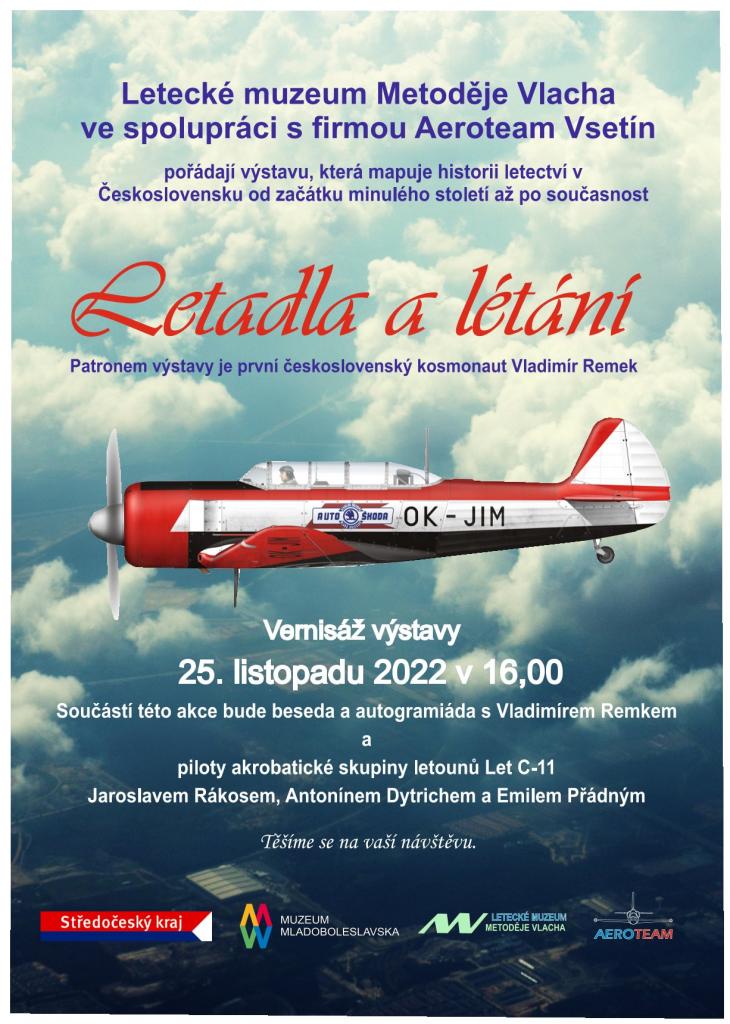 Letecké muzeum Metoděje Vlacha ve spolupráci s firmou Aeroteam Vsetín připravilo výstavu mapující historii letectví v Československu od jeho počátků po současnost. Patronem výstavy je první československý kosmonaut Vladimír Remek, který ji společně s autory zahájí 25. 11.