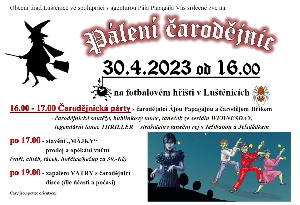 30.4.2023 od 16.00 na fotbalovém hřišti v Luštěnicích