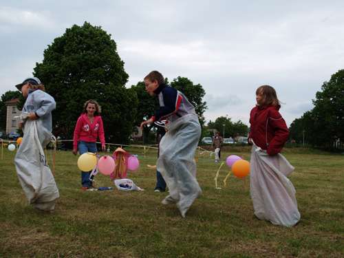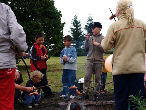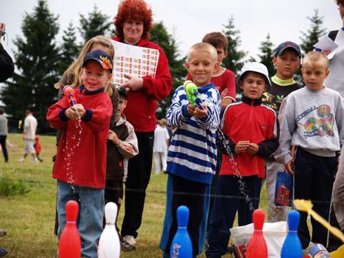 Na dětském dni bylo 15 soutěží pro děti, začal ve 14 hod na koupališti. Od 15.30 pršelo, tak jsme dělali improvizované Caruso show, kolem 17 hodiny se zase vyčasilo, tak jsme opékali buřty. Končili jsme někdy po 18 hodině. Účast byla výjimečně vysoká - asi 150 děti a zhruba 120 dospělých. Foto: Jaromír Sedlák